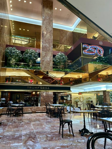 ニューヨーク5番街のど真ん中にあるトランプタワーの地階には、このような、時間と料金を全く気にせずくつろげる穴場的スペースがあり、僕はなにか話し合いを行う際、よくここに来る。